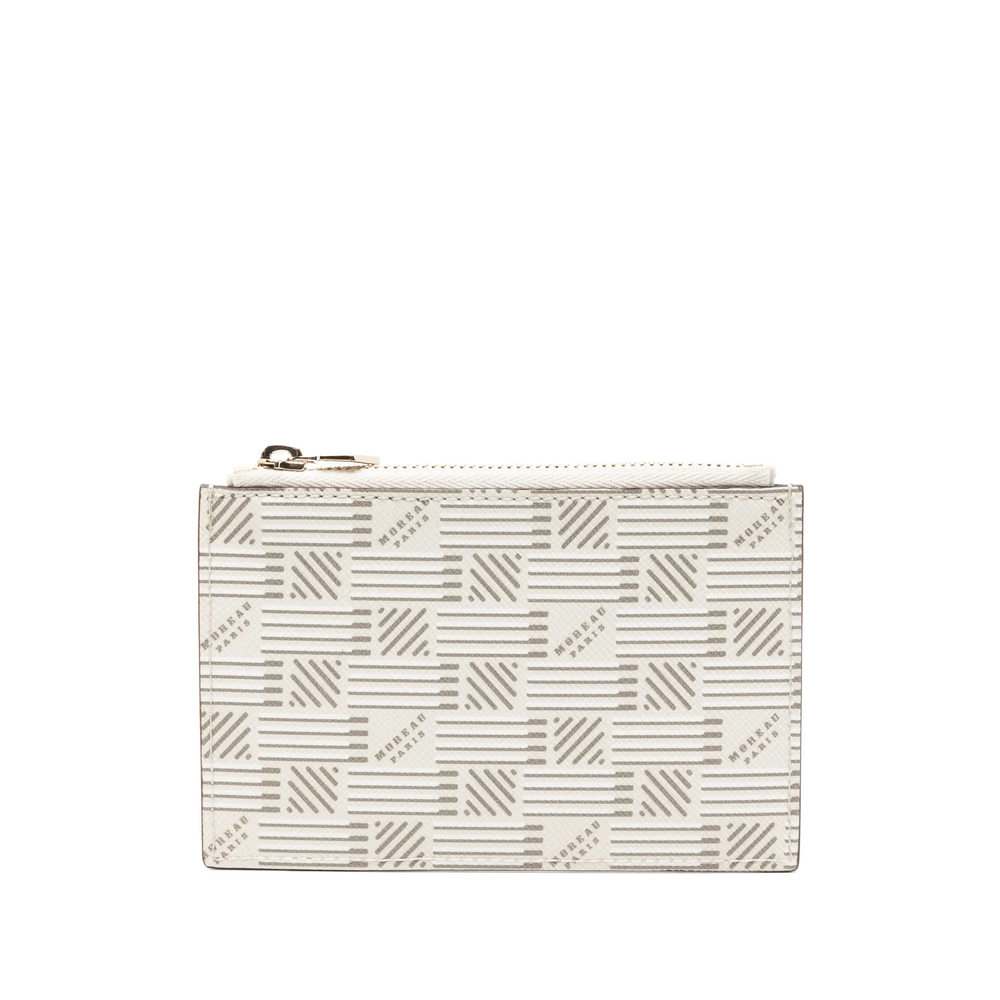 white all-over geometric pattern top zip fastening multiple card slots