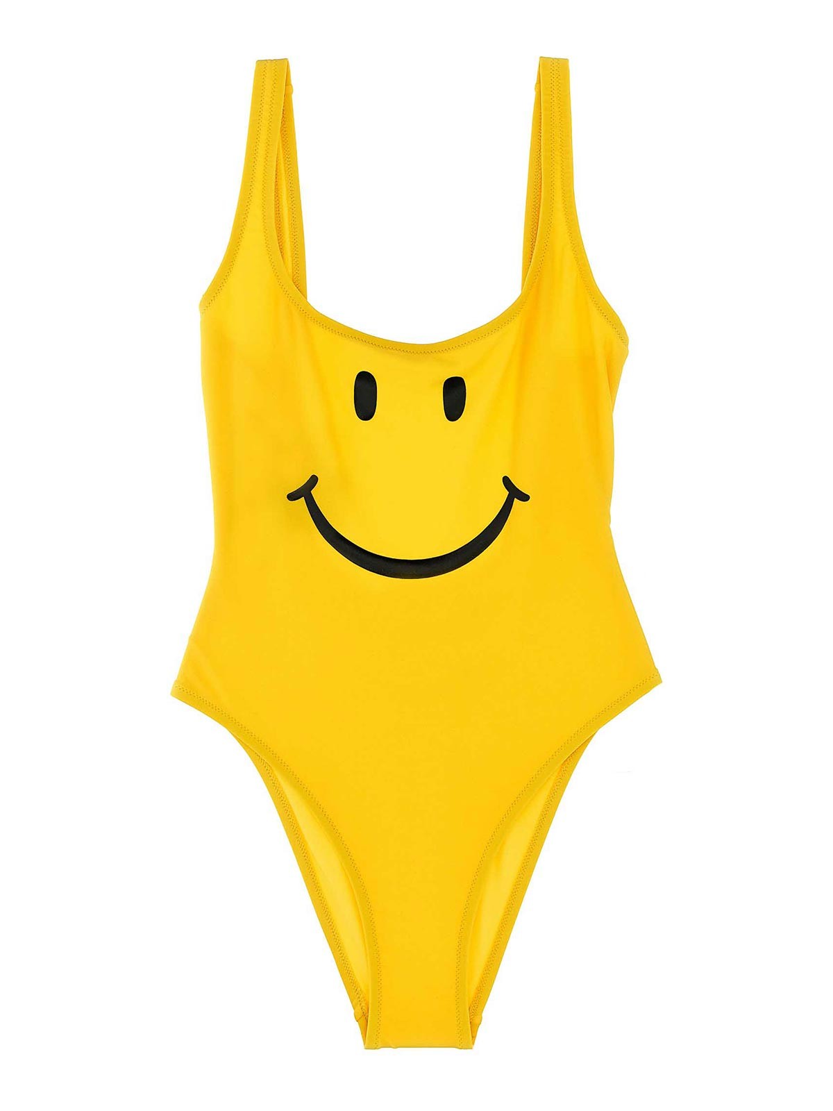 Maillot de bain une pièce avec encolure arrière imprimée « smyley » et logo imprimé