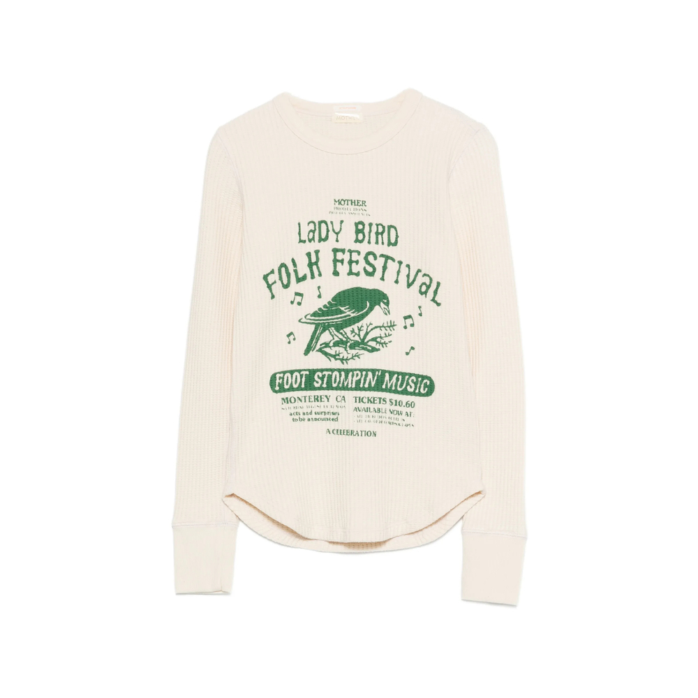 beige print detail long sleeves round neck ribbed trims waffle knit
