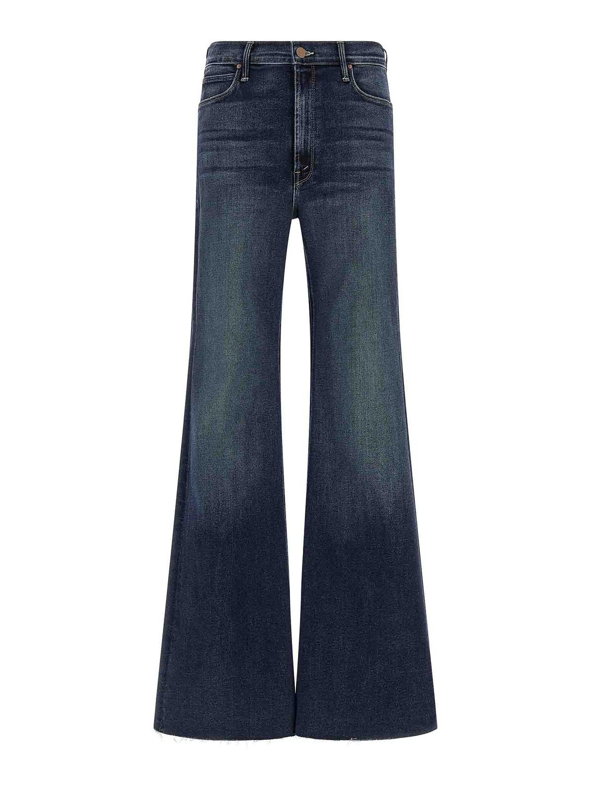 jean stretch « The Doozy Fray » avec taille haute « Scorchin », jambe évasée, fermeture éclair et bouton, cinq poches, ourlet effiloché