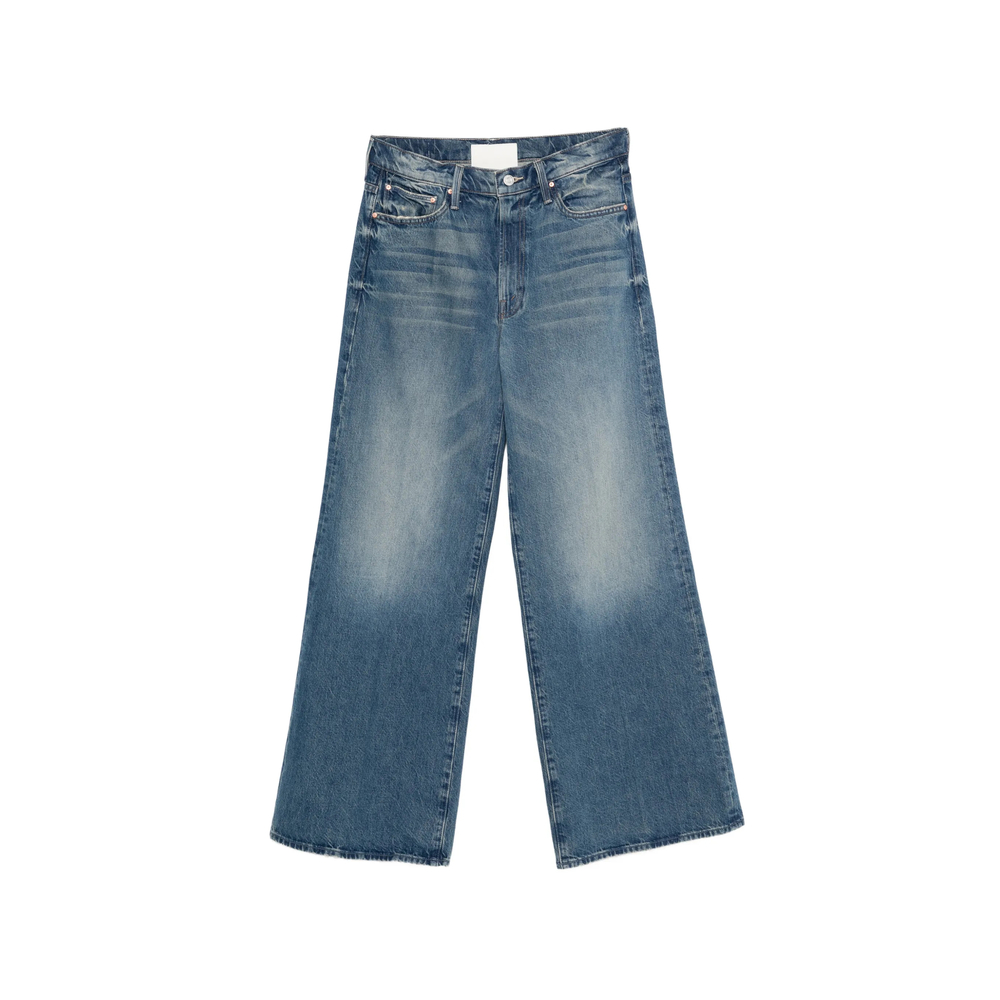 light blue wide leg five pockets belt loops raw hem high-rise