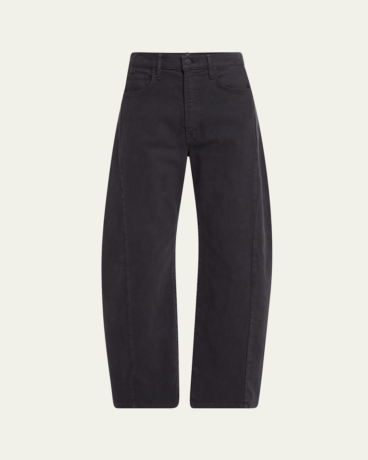 MOTHER "The HalfPipe Flood" jeans are crafted from a stretch cotton blend in a faded black hue Approx. 12.5" rise; 30" inseam High rise Fivepocket style Wide, curved legs Full length Button/zip fly; belt loops Cotton/lyocell/elastane Machine wash cold Made in USA