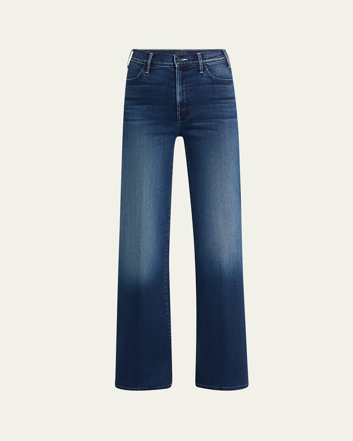 MOTHER "The Hustler Roller Sneak" jeans in faded darkwash denim Approx. 11" rise; 32" inseam High rise Fivepocket style Wide legs Full length Button/zip fly; belt loops Cotton/polyester/polyurethane Made in USA