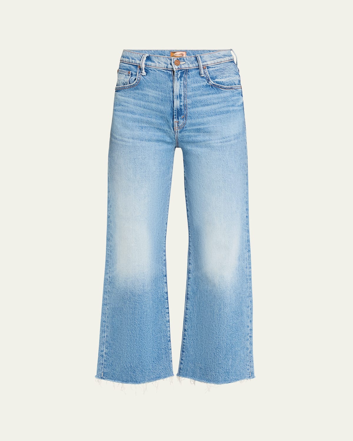 MOTHER "The Maven Ankle Fray" jeans in faded mediumwash denim Midrise; sits high on the hip Fivepocket style Loose, wide legs Ankle length Button/zip fly; belt loops Cotton/lyocell/elastane Made in USA