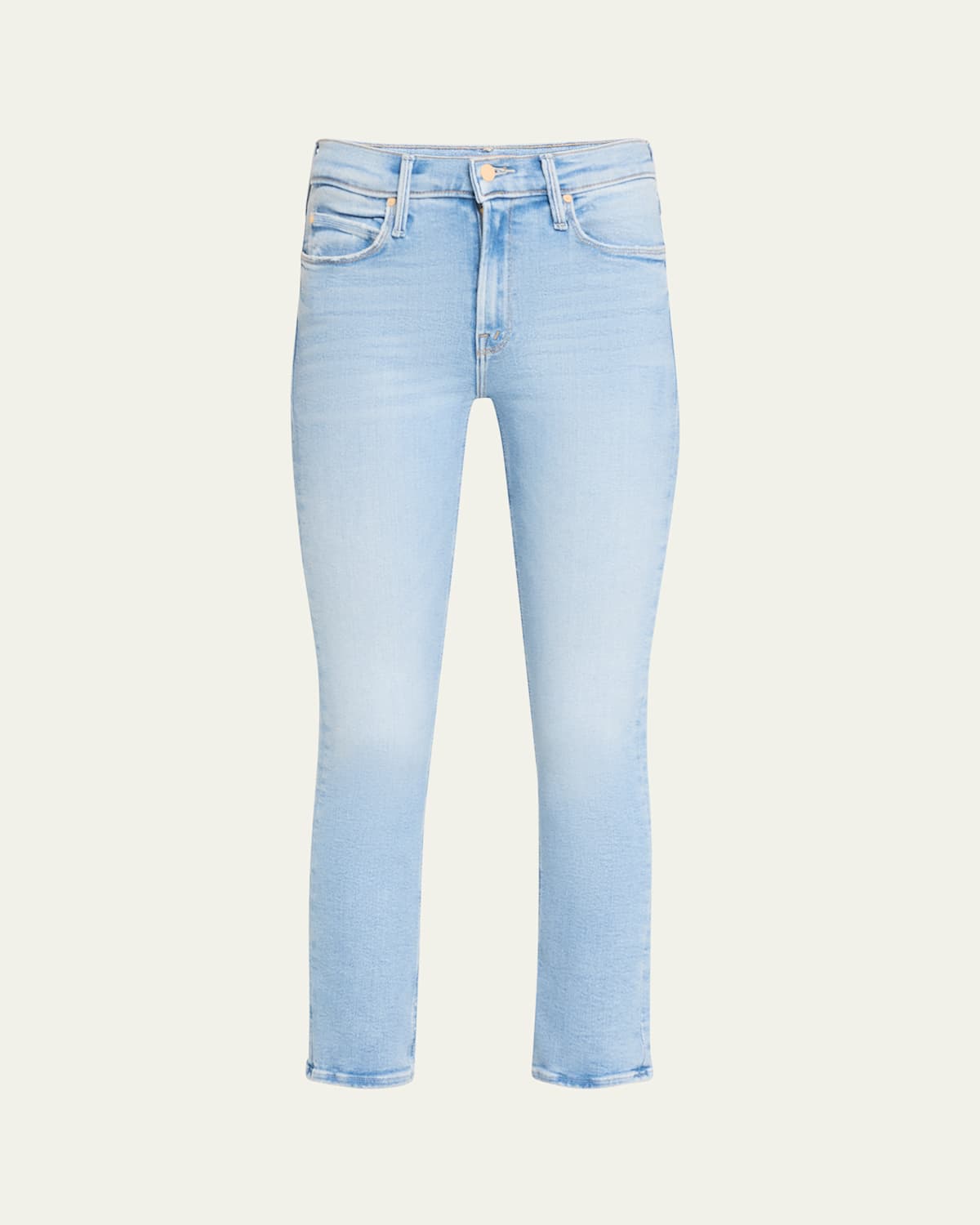 MOTHER "The MidRise Dazzler Ankle" jeans in faded lightwash stretchdenim Midrise; sits high on the hip Fivepocket style Slim fit Ankle length Button/zip fly; belt loops Cotton/modal/polyester Made in USA