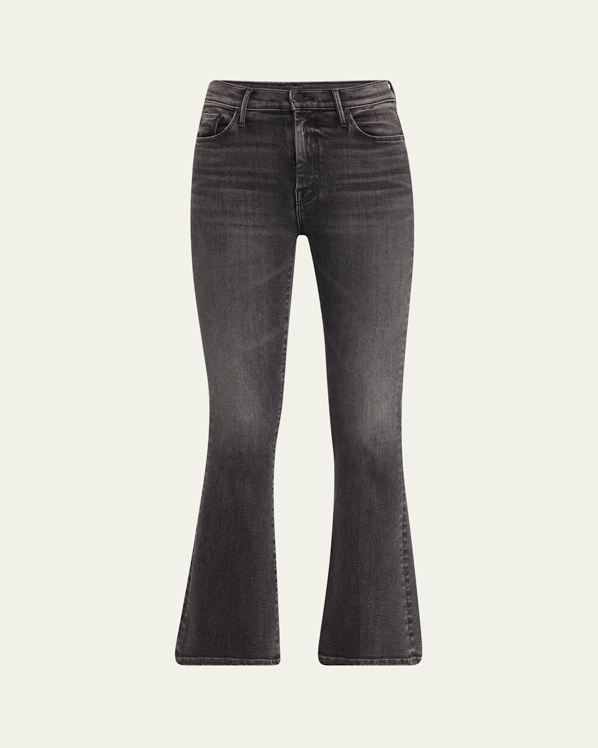 MOTHER "The Weekender" flare jeans in faded black stretchdenim Approx. 9.8" rise; 31" inseam Midrise; sits high on the hip Fivepocket style Fitted through the hip and thigh Full length Button/zip fly; belt loops Cotton/modal/polyester Made in USA