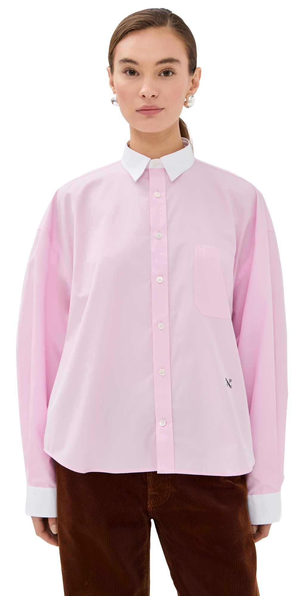 Fabric: Lightweight, non-stretch poplin. Curved hem. Contrast collar and cuffs. Dropped shoulders. Embroidered logo. Collared neck. Long sleeves with button cuffs. Button placket. Patch breast pocket. Shell: 100% cotton. Hand wash. Imported, Turkey. Measurements: Measurements from size 36 Length: 26in / 66.0cm, from shoulder