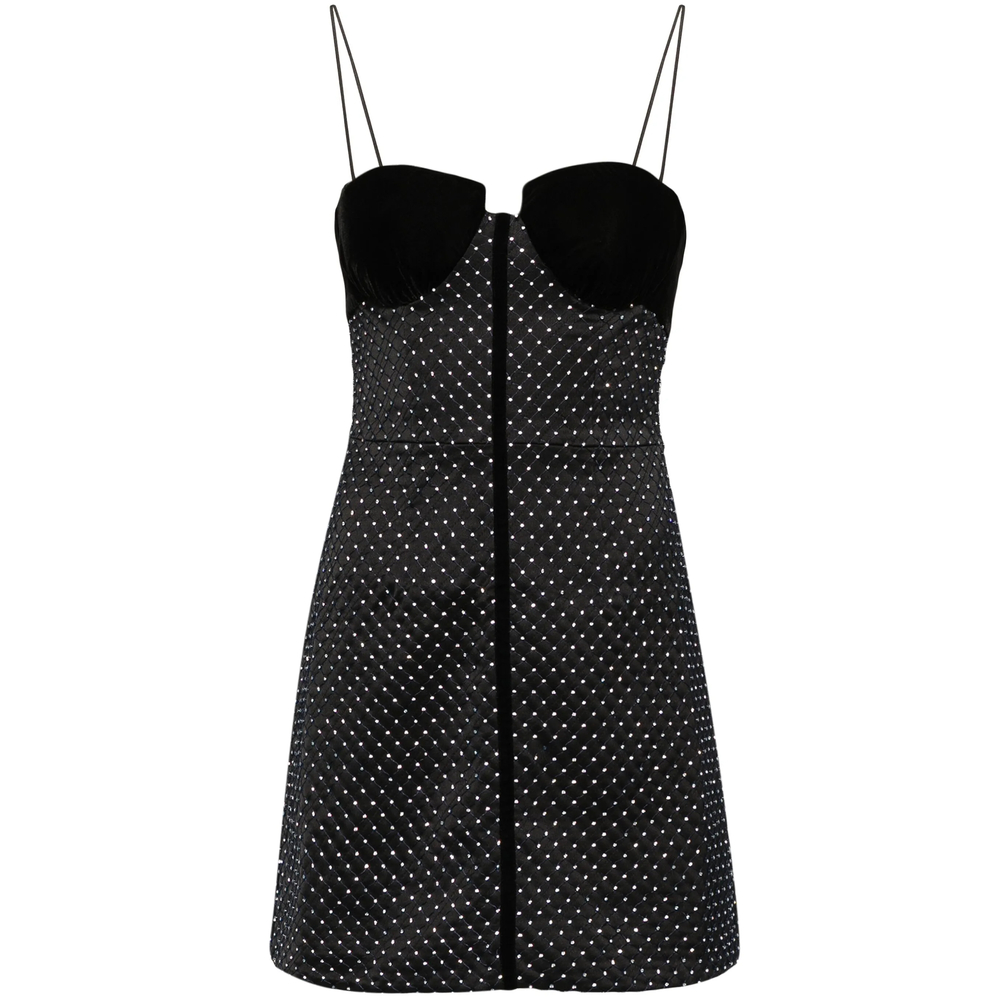 black crystal embellishment spaghetti straps sweetheart neck concealed rear zip fastening straight hem