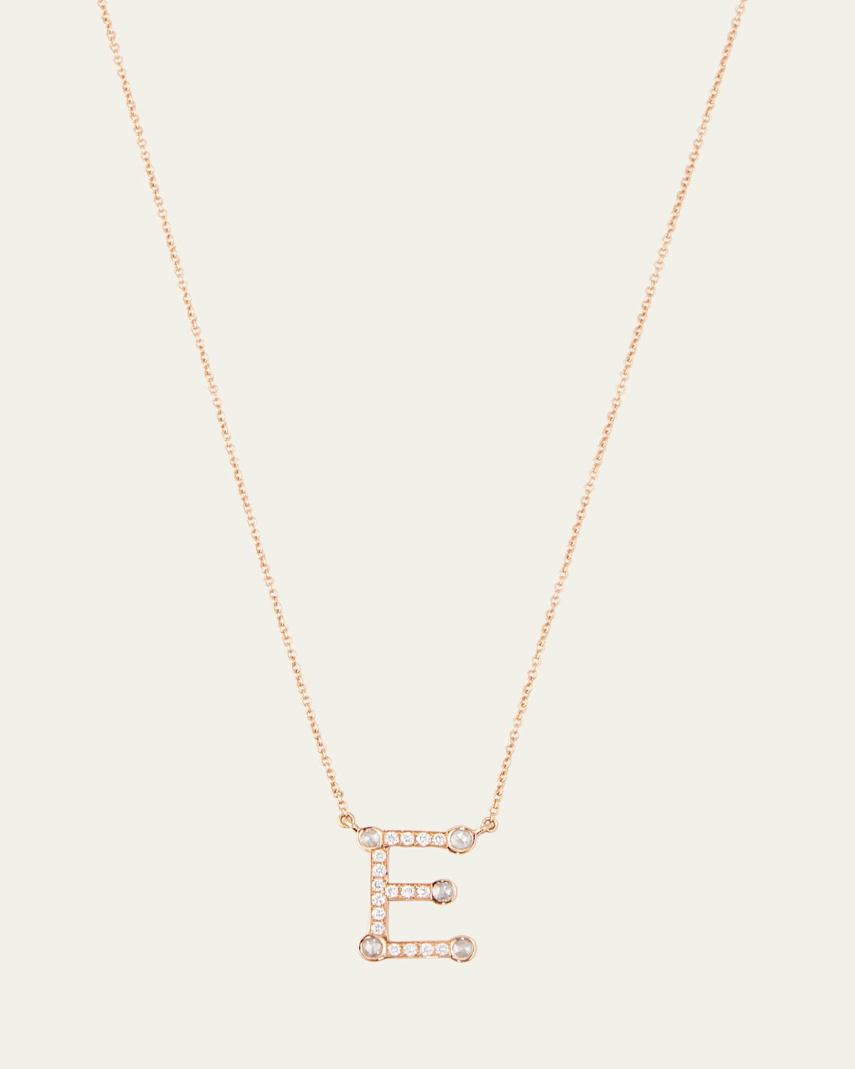 18K Rose Gold Alphabet E Charm Necklace with Diamonds