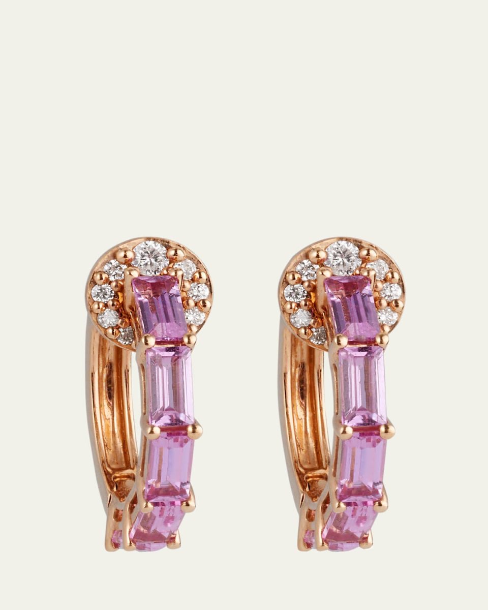 18K Rose Gold Baguette Pink Sapphire and Diamond Hoop Earrings