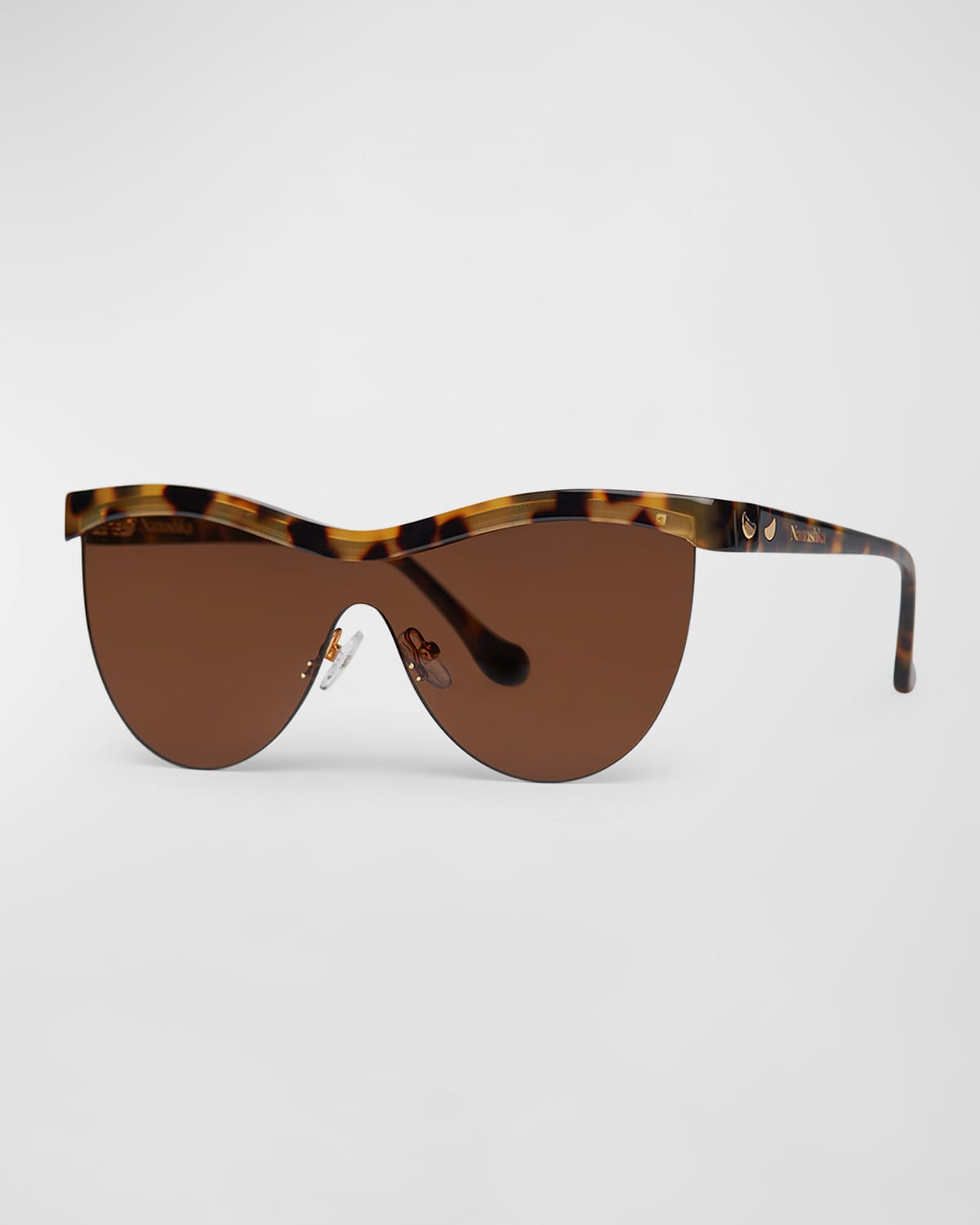 Nanushka "Baya" semirimless round sunglasses in acetate Solidcolor lenses Adjustable nose pads Logo on temples Thin, tapered arms 100% UVA/UVB protection Imported