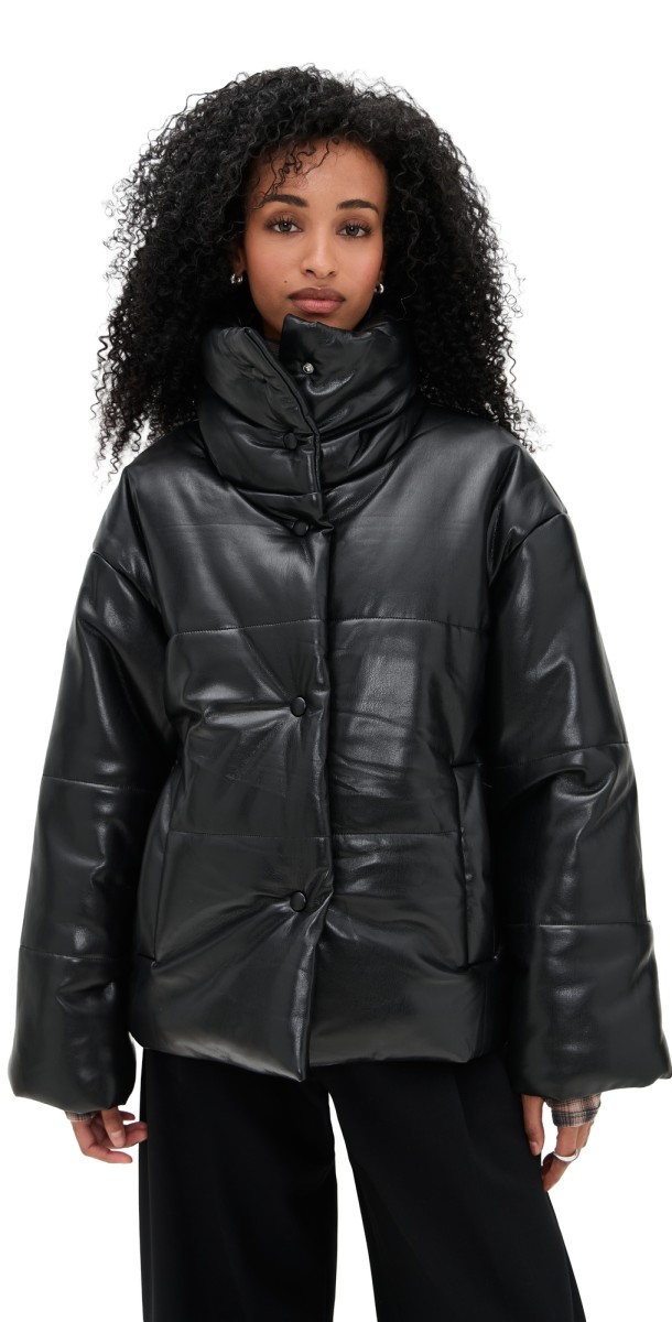 Fabric: Heavyweight, non-stretch faux leather. Quilted design. Collared neck. Long sleeves. Snap placket. Slant hip pockets. Shell: 100% polyurethane. Lined. Lining: 100% polyester. Dry clean. Imported, China. Measurements: Measurements from size XS Length: 25.25in / 64.0cm, from shoulder