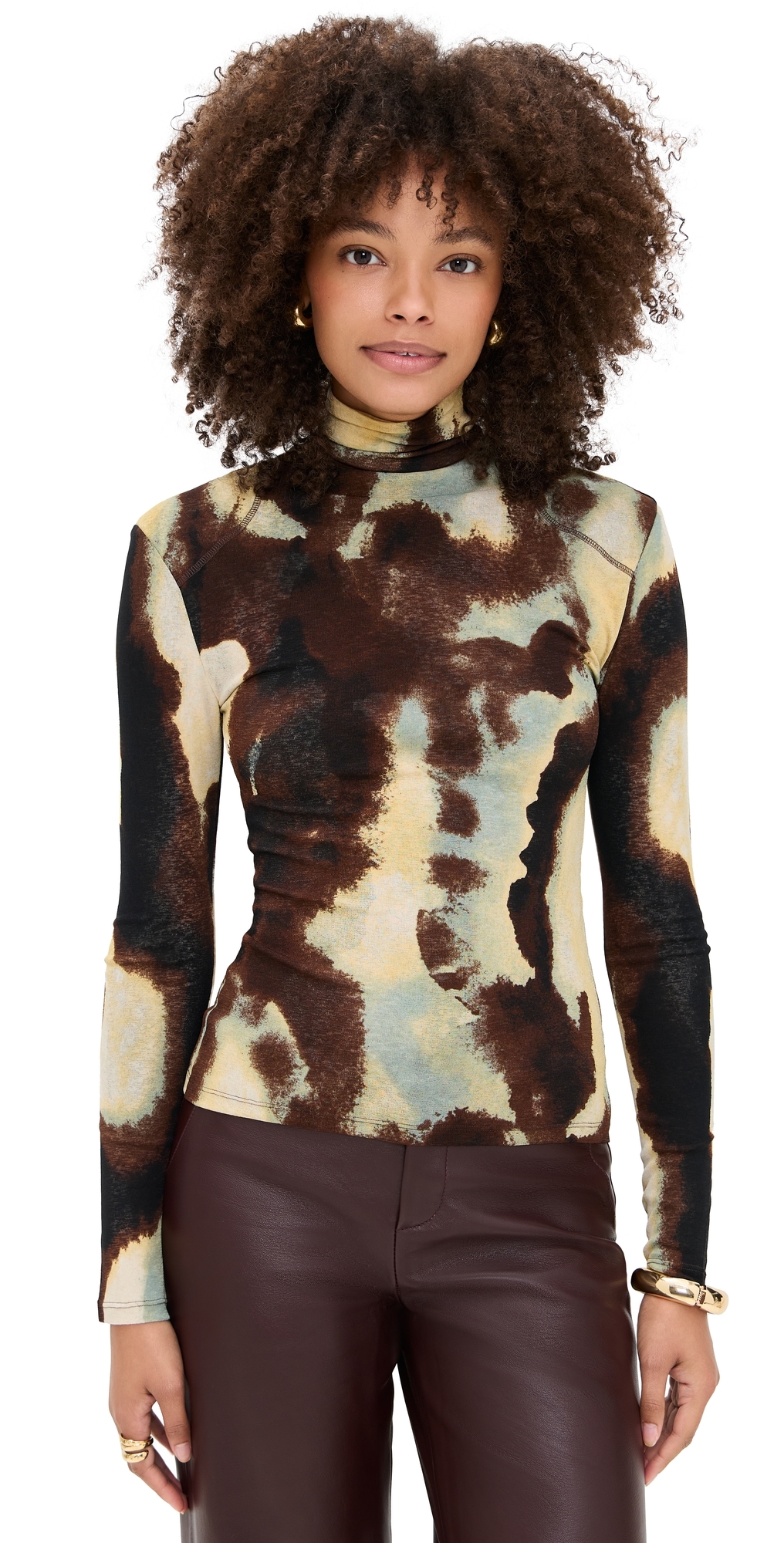 Fabric: Lightweight, super-stretch jersey. Abstract watercolor print. Shoulder pads. Turtleneck. Long sleeves. Shell: 100% polyester. Double-layered. Wash cold. Imported, China. Measurements: Measurements from size XS Length: 23.25in / 59.0cm, from shoulder