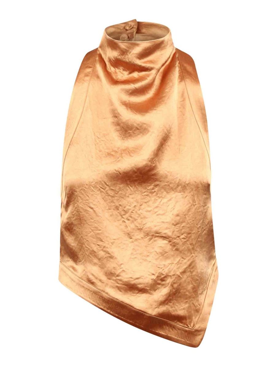 Top Inara en satin volanté de Nanushka, col Mezzaluna avec col arrière, boutons à crochet et aillets cachés sur l'ourlet asymétrique.