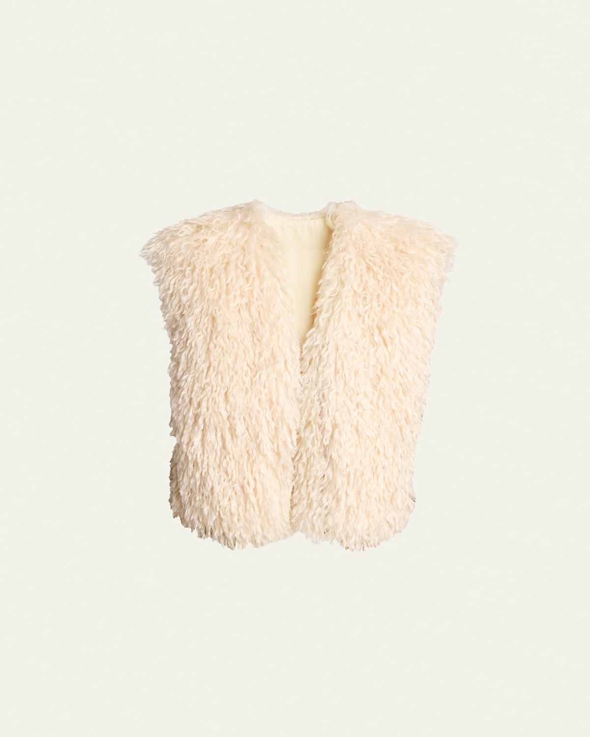 Nanushka "Xylia" curly fauxfur vest Boxy fit Hem sits at the hip Open front Polyester/cotton/Amni® nylon Lining: Cotton/nylon Dry clean; do not iton Imported