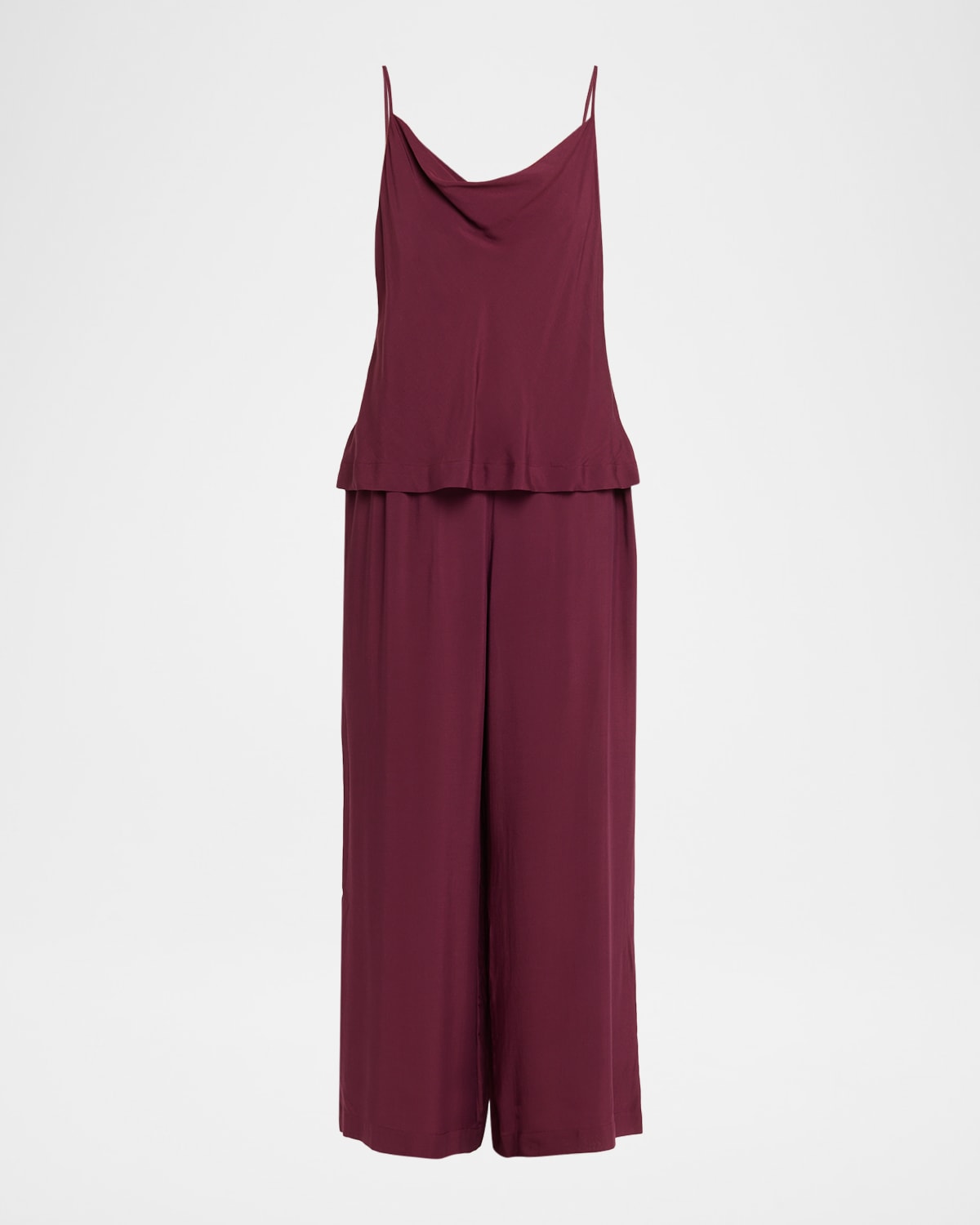 This Natori pajama set is crafted in sleek, lightweight, and buttery soft woven fabric, designed to drape on the body Approx. 23"L from shoulders to hem Cowl neckline Sleeveless Adjustable straps Relaxed fit Pullover style Includes matching pants Approx. 29" inseam Elasticized drawstring waistband Full length Straight legs Pullon style Promodal® rayon/modal/silk Machine wash cold Imported