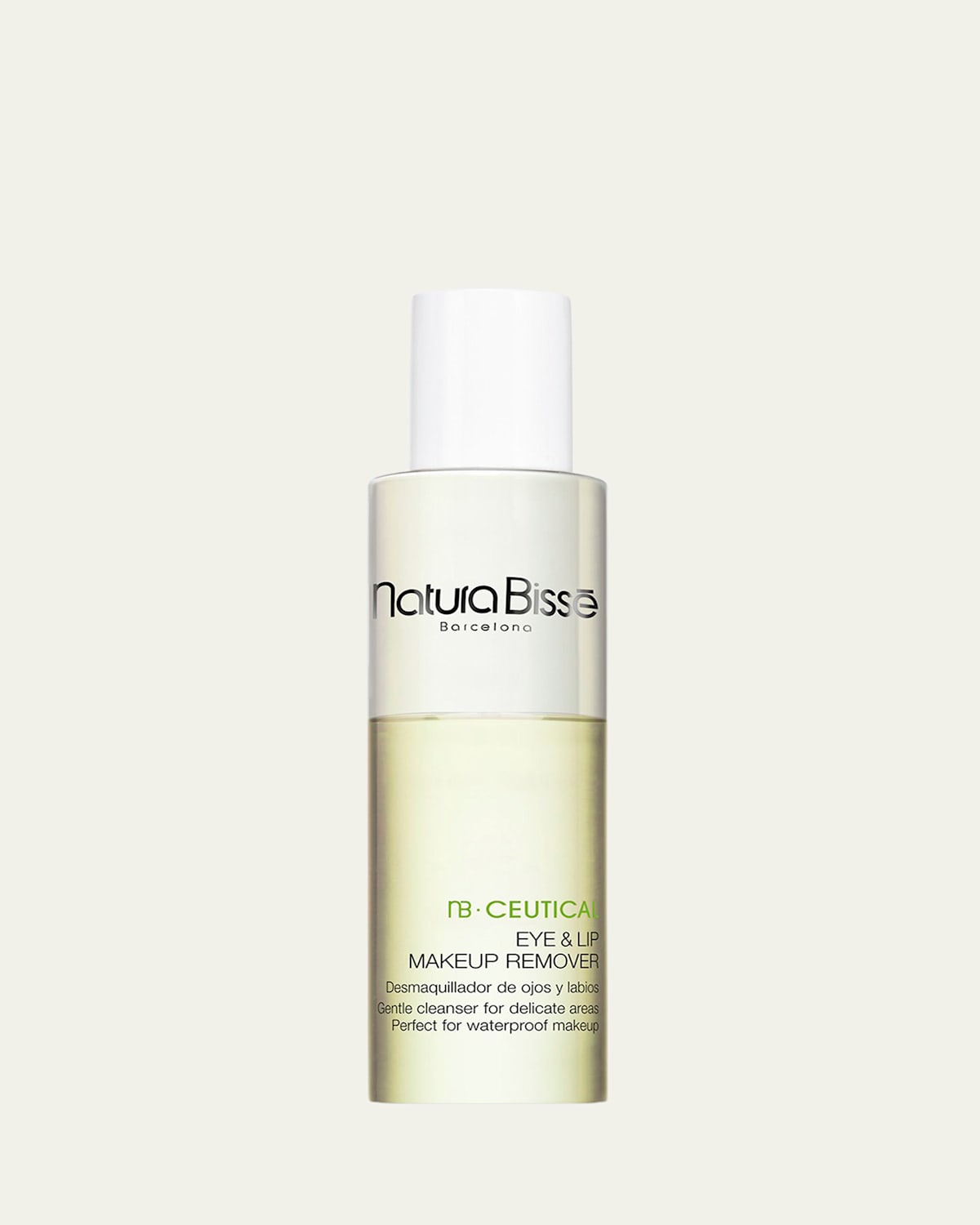 Easily removes all makeup, even waterproof mascara and lipstick. Helps preserve the skin's natural moisture. Smoothens eyelids. Dermatologically, Ophthalmologically, and allergy tested. SCIENCE BEHIND IT Oil phase effectively removes makeup and impurities. Water phase infuses intense hydrating active ingredients that help preserve your skin's natural moisture and prevent skin dehydration. Green tea provides a soothing, comforting effect. Betaine helps regulate your skin's water balance. Chelating agents reduce the feeling of dryness. HOW TO USE Step 1: Use daily to remove makeup and cleanse the eye and lip contour area. First, shake bottle to blend the two phases.. Step 2: Apply a small amount to a cotton pad and apply to the eye and lip area.. Step 3: Remove mascara with gentle movements from the base of the eyelashes to the tip. No need to rinse. BEAUTY TIPS Use a cotton swab moistened with NB Ceutical Eye amp; Lip Makeup Remover to refine edges and the shape of your makeup. Recommended for contact lens wearers.