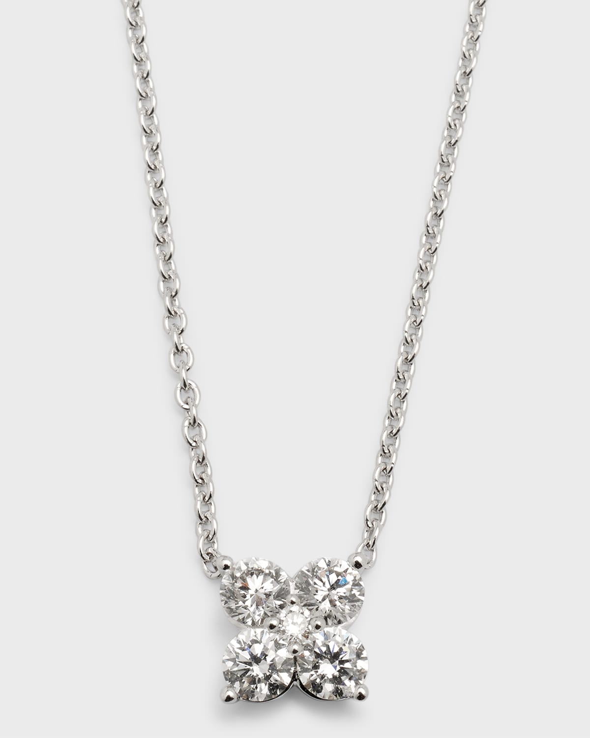 18K White Gold Round Diamond Flower Pendant, 0.62tcw