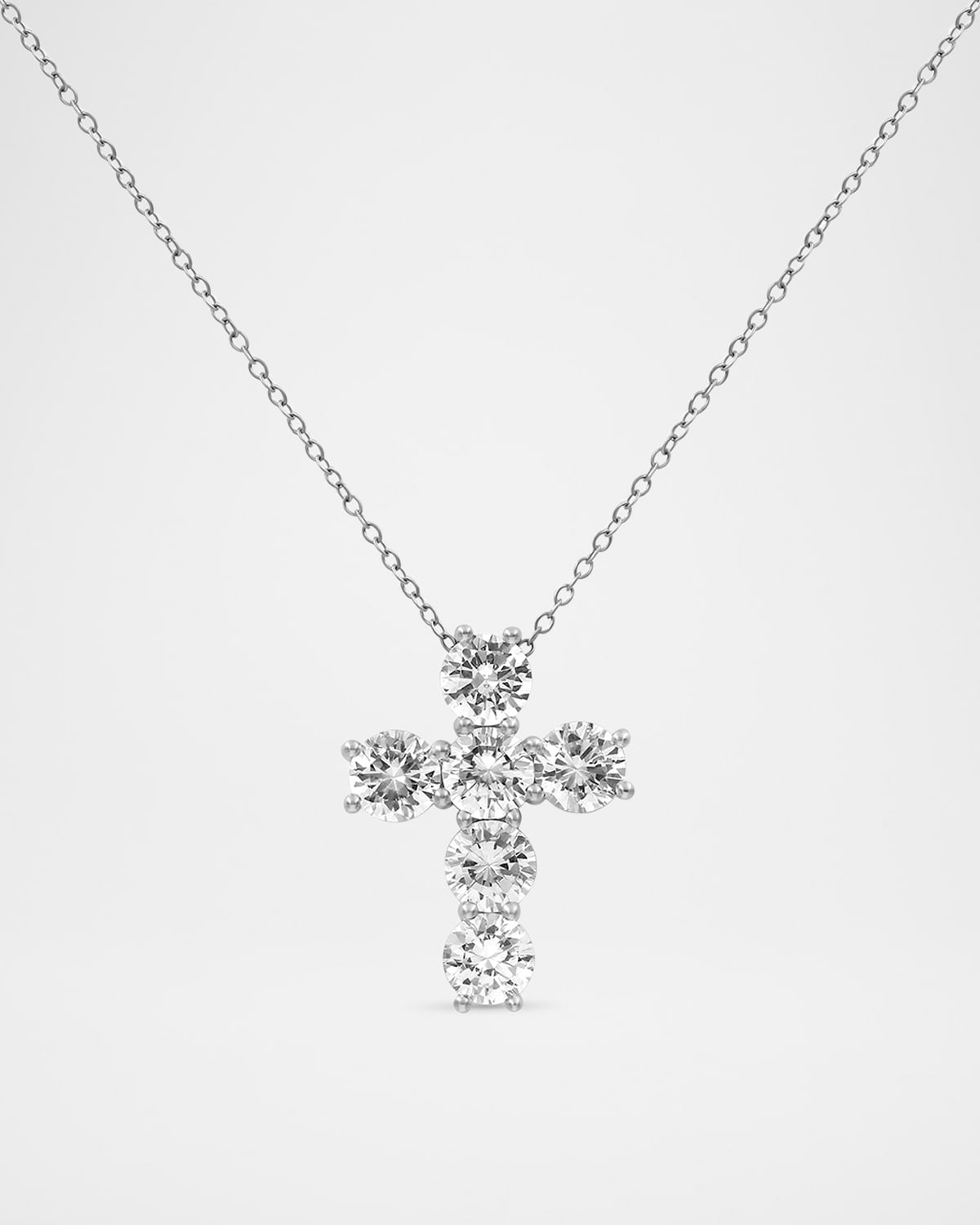 Round Lab Grown Diamond 18K White Gold Cross Pendant Necklace