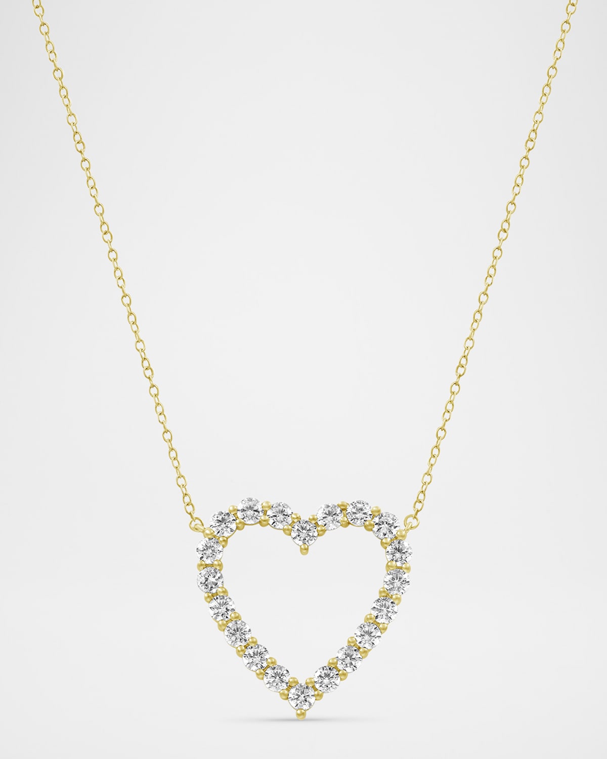 Round Lab Grown Diamond 18K Yellow Gold Open Heart Pendant Necklace