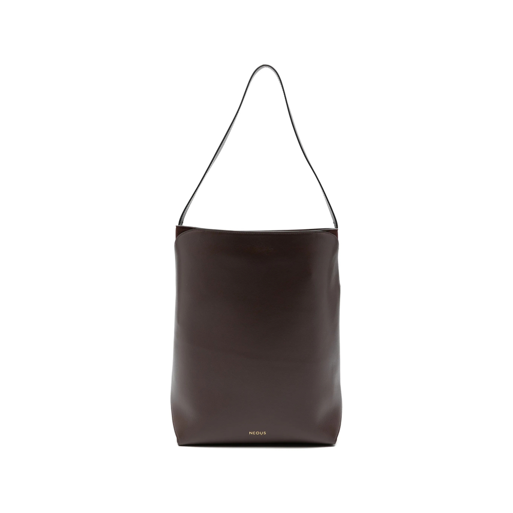 dark chocolate top handle internal slip pocket flap closure embossed logo