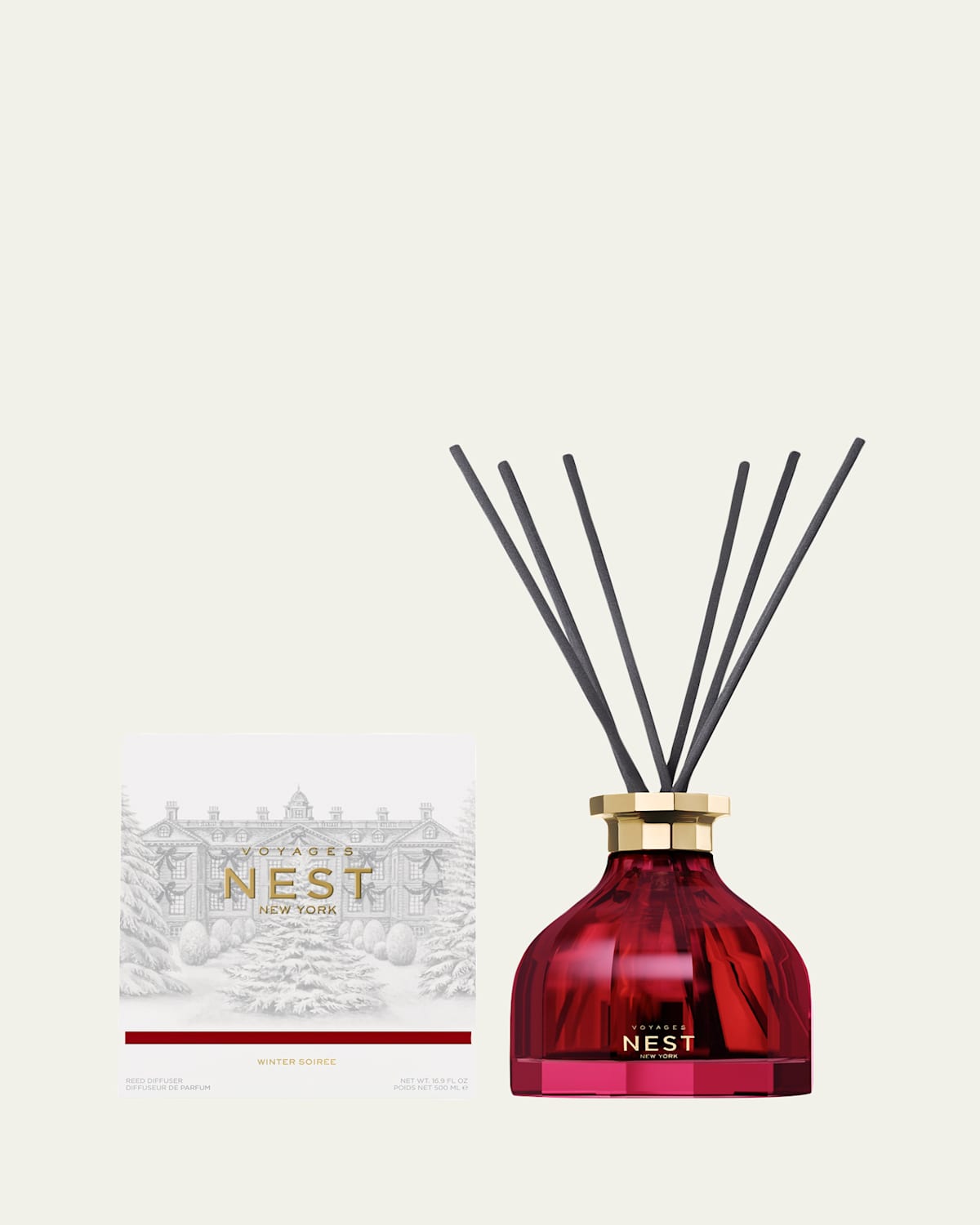 Step into a snowdusted english country manor, where the spirit of the holidays is eternal. Warm cardamom tea, cinnamon, and ginger blend with smooth amber and crème caramel against a backdrop of velvety vanilla and rich tobacco leaves. A celebration of the season's splendor. Fragrance Notes: Cardamom Tea, Creme Caramel, Tobacco Leaves The intensity and reach of the fragrance can be customized based on the number of reeds used. Flip reeds weekly, or more often, to intensify the fragrance experience. Up to 90 days of continuous fragrance. 16.9 oz. / 500mL Pure, FDA approved, naturally derived, foodgrade paraffin, renewable plant oils, vegetable soy wax, fragrance. *Please Note: The ingredient list is subject to change. Please refer to the product packaging for the most uptodate ingredient list.Proposition 65 warning for California