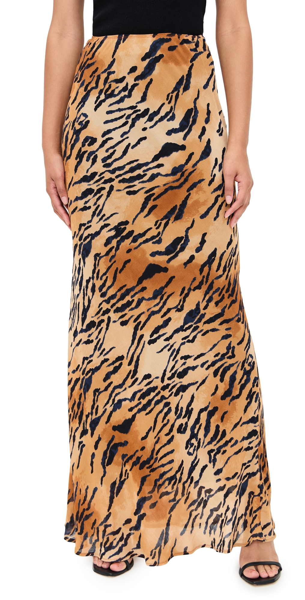 Fabric: Lightweight stretch chiffon. Tiger print. Covered elastic waistband. Shell: 100% viscose. Lined. Lining: 95% polyester/5% elastane. Dry clean. Imported, Romania. Measurements: Measurements from size 2 Length: 41in / 104.0cm