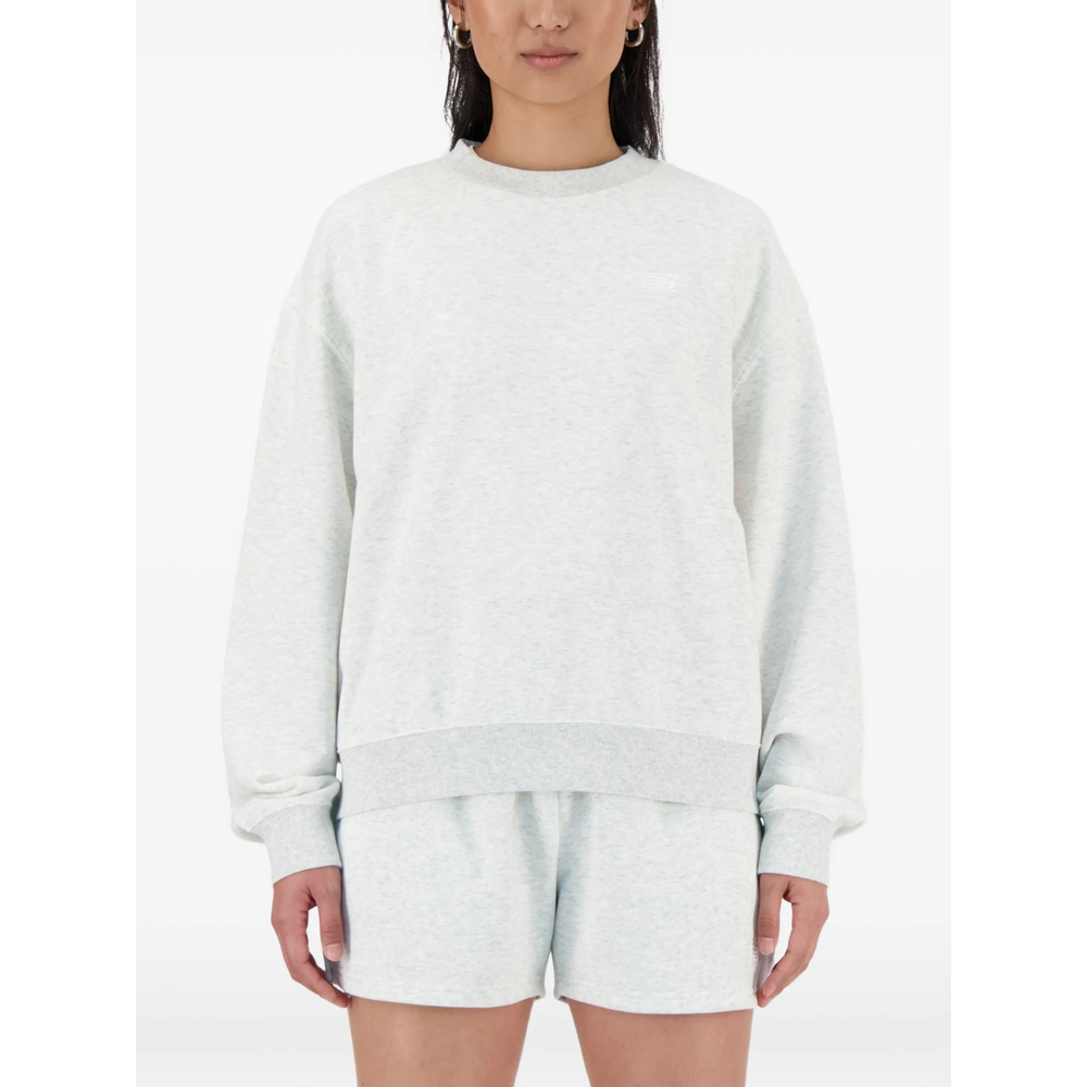 light grey crew neck long sleeves ribbed hem and cuffs