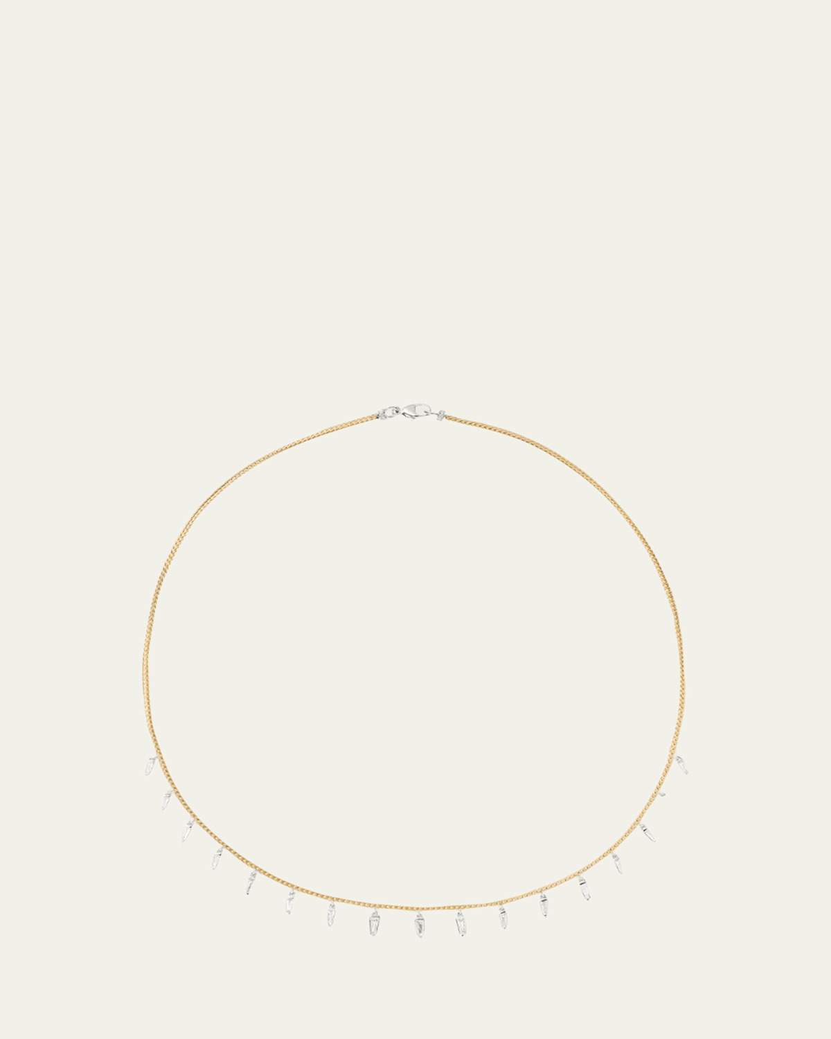 Nikos Koulis necklace from the Together collection 18karat yellow gold Tapered baguette and round white diamond fringe Diamond total carat weight: 0.81 Lobster clasp Made in Greece