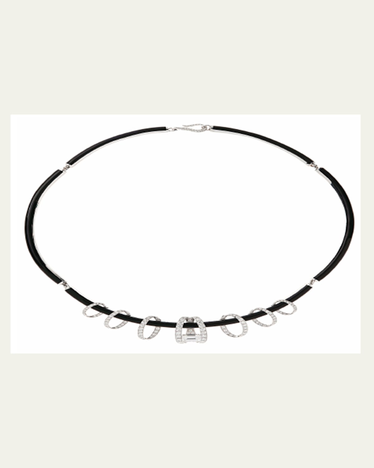 Oui A-Round Short Necklace with Black Enamel and White Diamonds