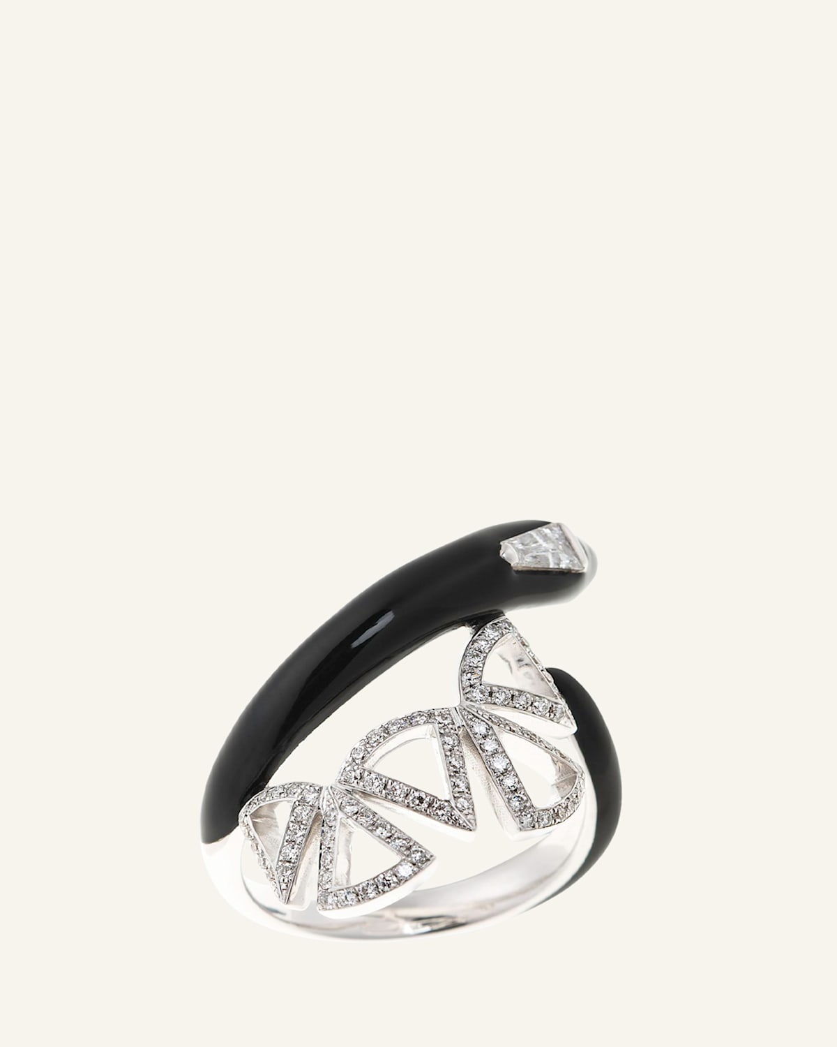 Oui Open Wrapped Diamond and Black Enamel Ring in 18k White Gold, Size