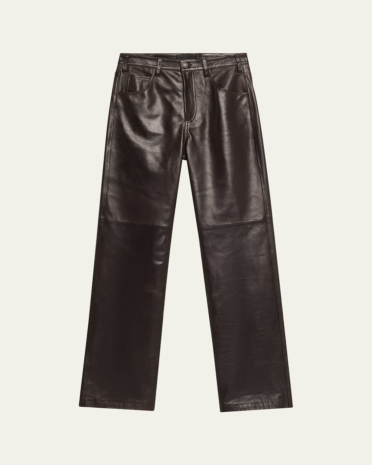 Nili Lotan "Joan" pants in black lambskin leather Mid rise sits high on hip Fivepocket style Straight legs Full length Button/zip fly; belt loops Leather Made in USA from imported materials