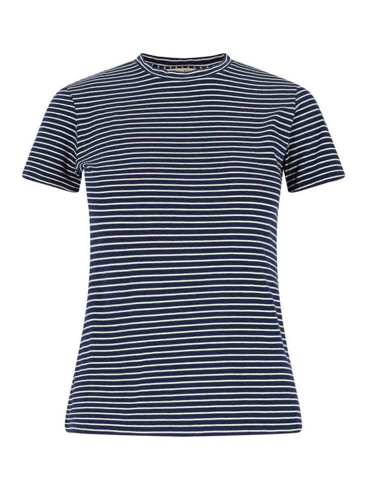 T-shirt en laine nili lotan, en coton bleu, motif à rayures blanches, col rond, manches courtes, naud droit.