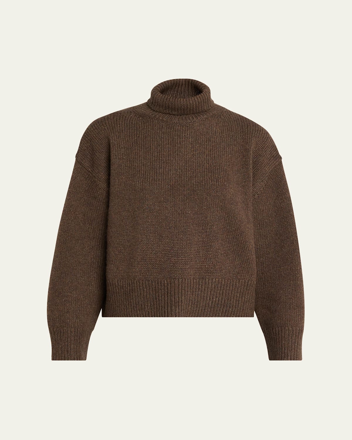 Nili Lotan "Tabitha" sweater featuring signature cable knit back detail Turtleneck Long sleeves Drop shoulders Boxy fit Ribbed cuffs and hem Pullover style Cashmere Made in USA