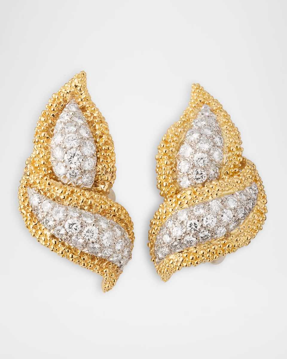 Estate Platinum and 18K Yellow Gold 76 Diamond Leaf Stippled Border Earrings
