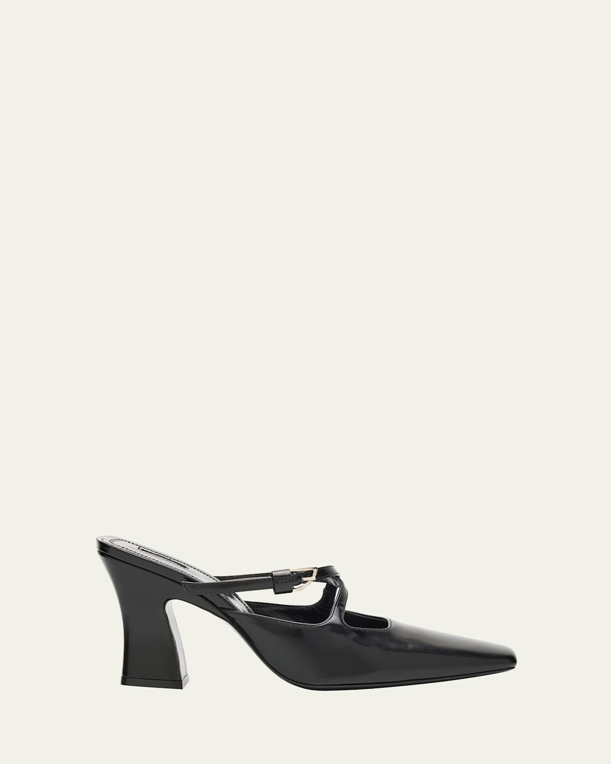 Nodaleto mule pumps in calf leather 3.25 in / 85 mm block heel Pointed square toe Crisscross vamp with adjustable buckle Slipon style Leather/Rubber outsole Lining: Leather Trim: Leather Made in Italy