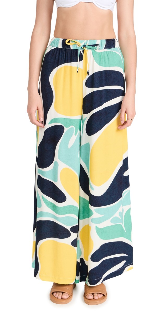 Fabric: Lightweight, non-stretch weave. Abstract print. Fabric made of material from wood and wood pulp derived from sustainably managed forests. Covered elastic waist with drawstring. Shell: 100% viscose. Hand wash. Made in the USA. Measurements: Measurements from size S Rise: 11.75in / 30cm Inseam: 30.25in / 77cm Leg opening: 38.5in / 98cm