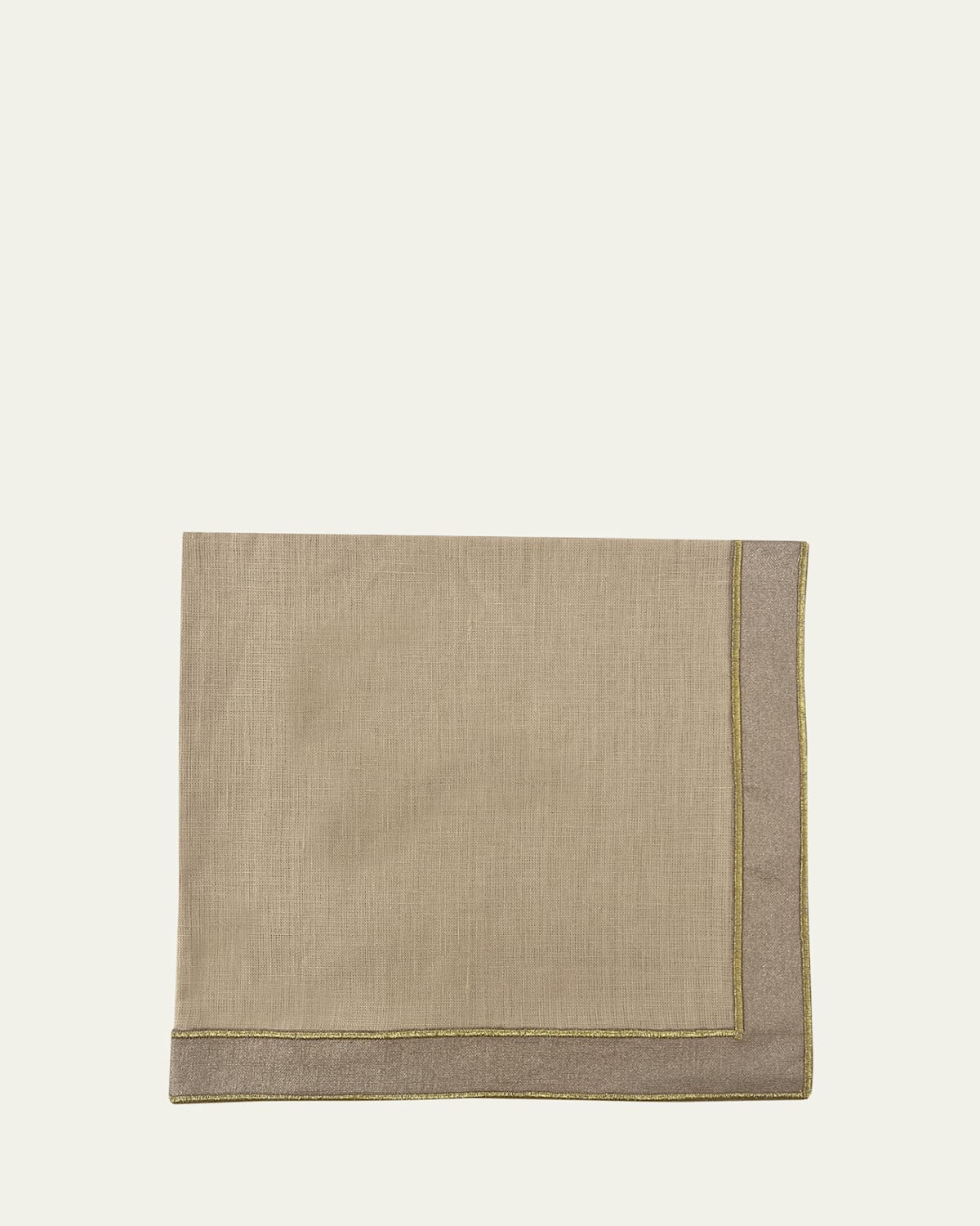 This classic napkin features a border embroidered with gold thread Crafted of linen Approx. 22"Sq. Item Weight (Lbs.): 0.2 Machine wash Imported