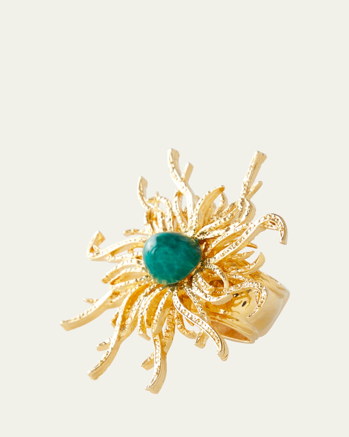Napkin rings are made of pewter with goldtone finish Features emerald stone at center Approx. 4"Dia. x 2.5"T Spot clean Set of four Made in USA