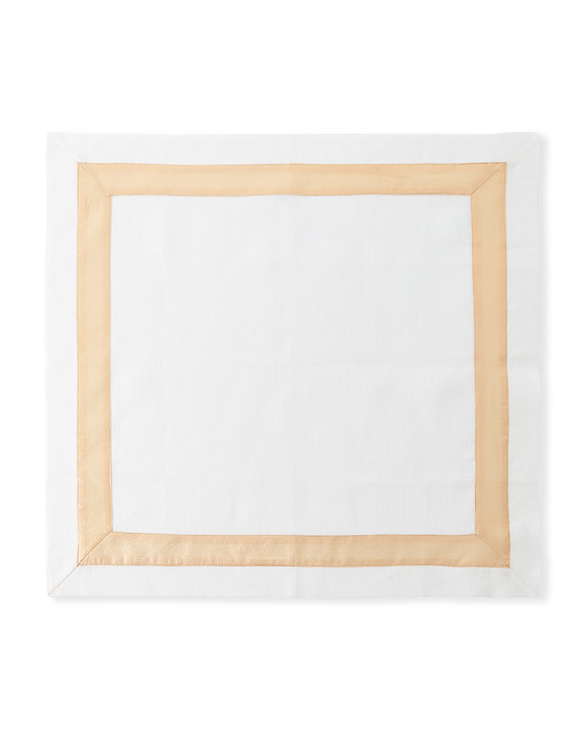 Linen napkin with shimmering border. Approx. 24"Sq. Machine wash. Imported.