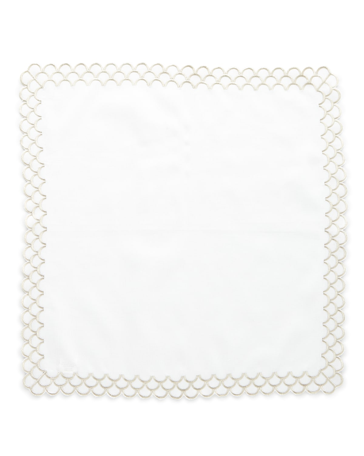 Napkin with tiered, scallop embroidered border. Linen; machine wash. 24"Sq. Imported.