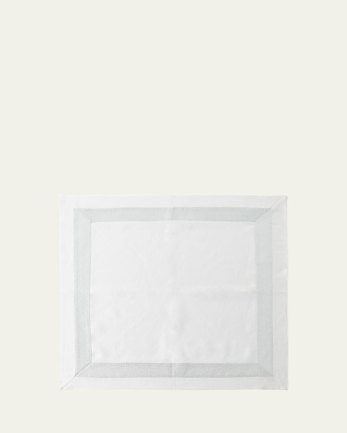 Linen napkin with shimmering border. Approx. 24"Sq. Machine wash. Imported.