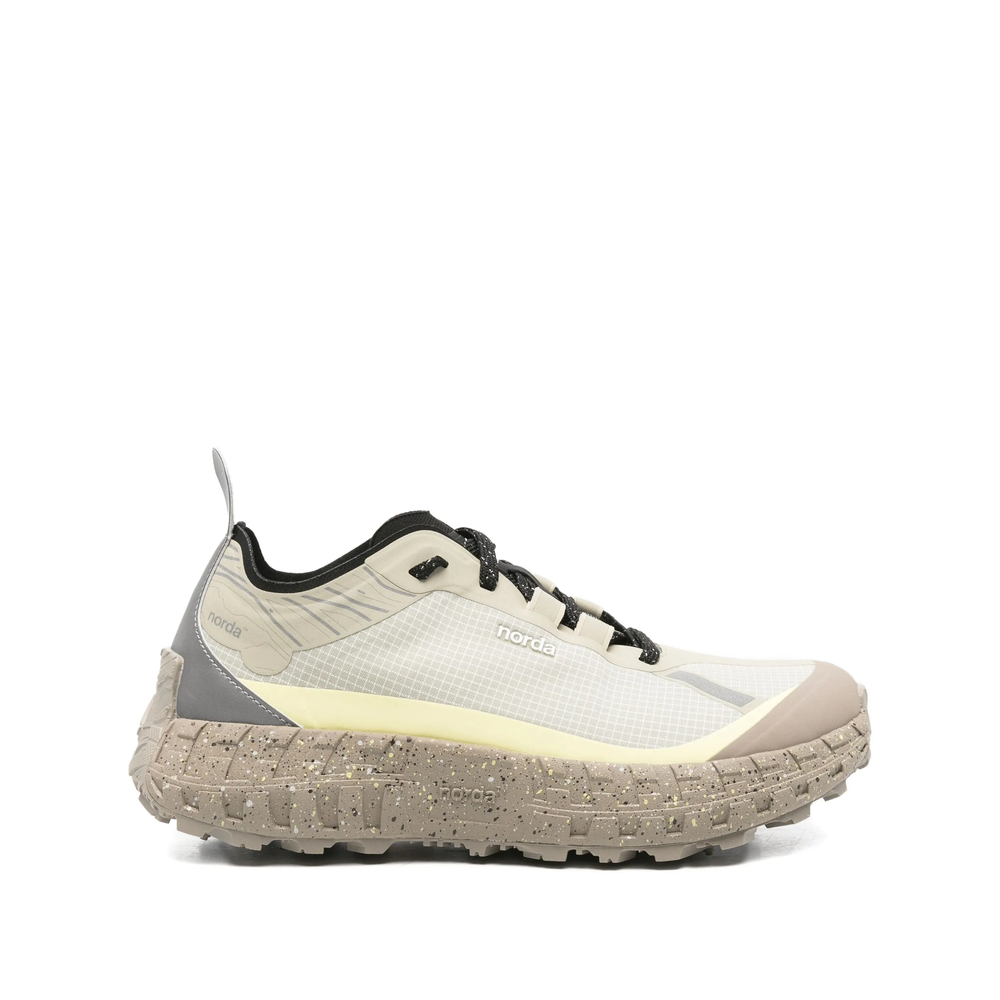 beige speckled effect pull-tab at the heel lace-up fastening logo motif chunky rubber sole