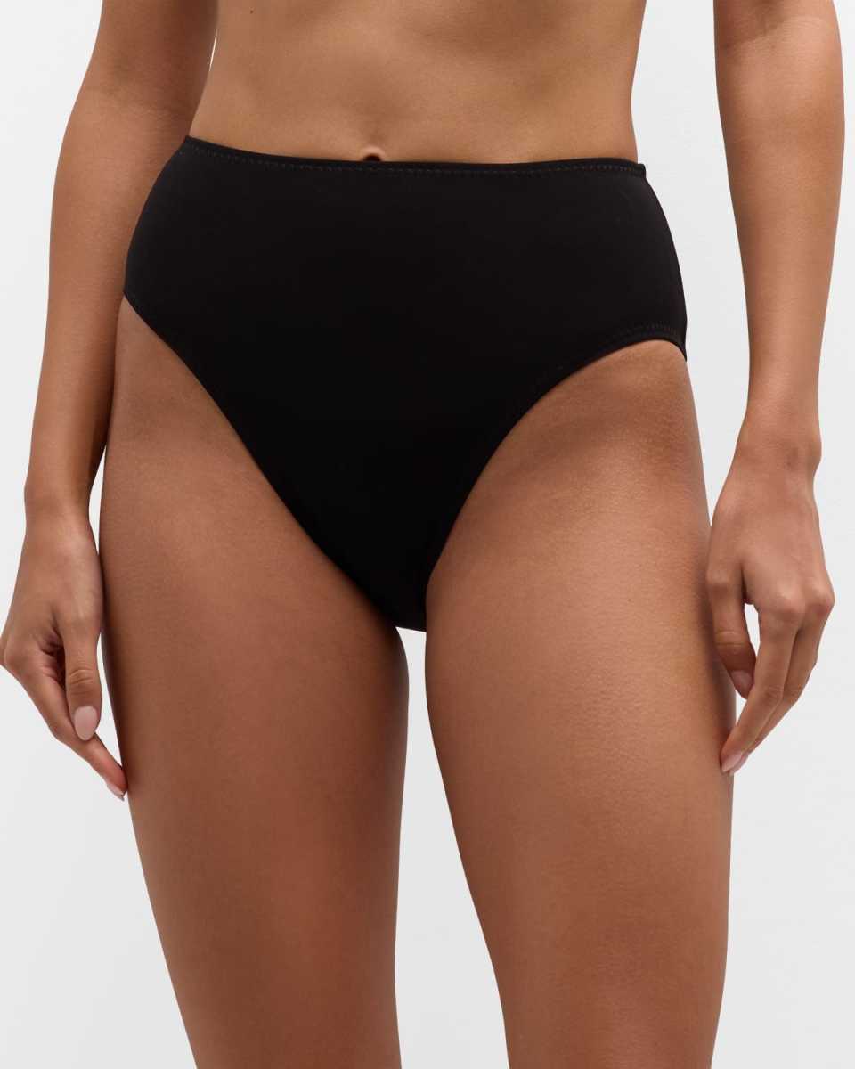 Norma Kamali fullylined solid bikini bottoms with exposed back seam detailing High waist Highcut legs Moderate seat coverage Polyester/spandex Made in Canada Top sold separately