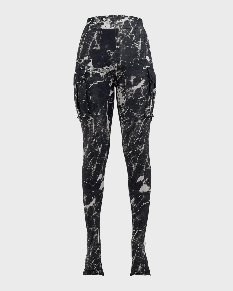 Marble Printed Cargo Stirrup Leggings
