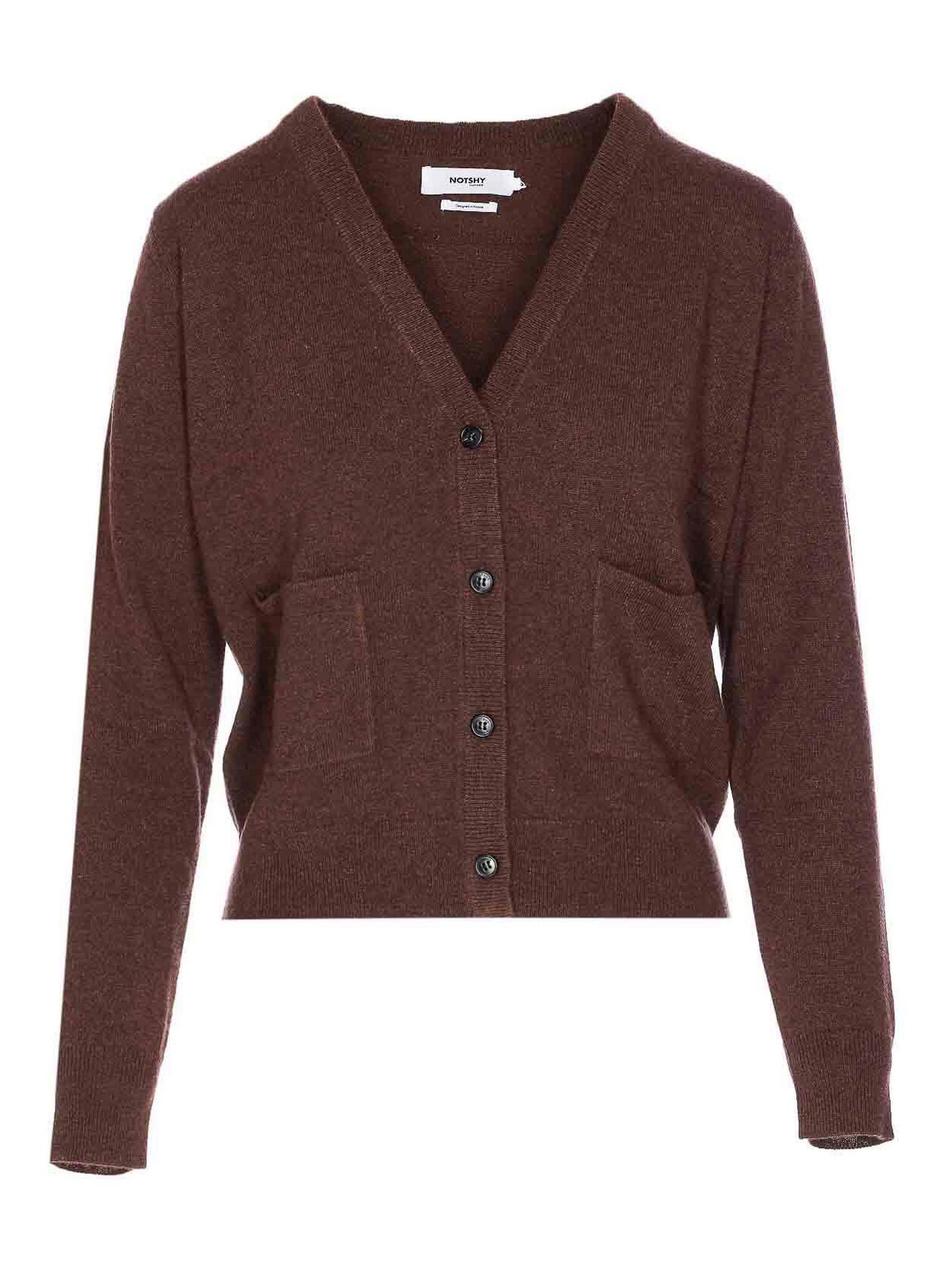 Cardigan Ava marron Not Shy avec boutons frontaux, manches longues et poches Nom de la couleur du créateur: brun