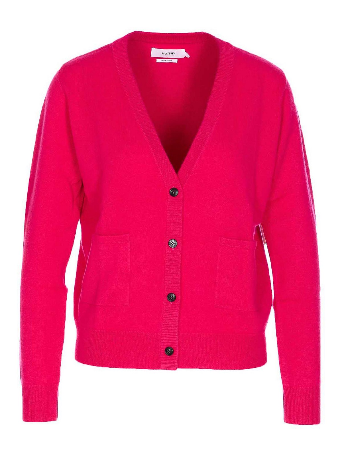 Cardigan Ava rose Not Shy avec boutons frontaux, manches longues et poches