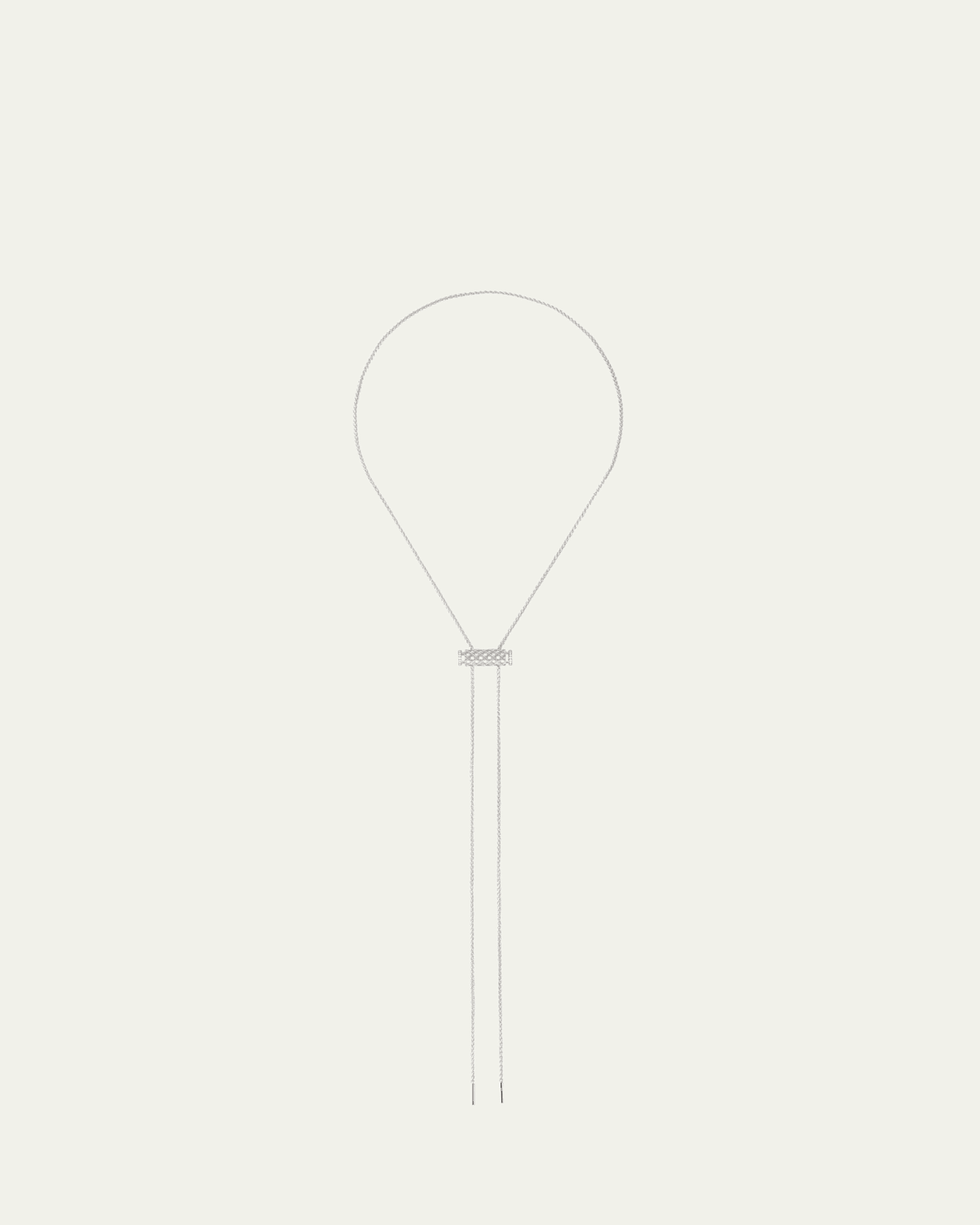 Nouvel Heritage lariat from the Latch Collection Necklace length: approx. 34 inches Polished 18karat gold with diamonds Diamond total carat weight: 0.85 Pinch the sides, slide into place on a latch chain, and release to secure. Adjustable length Made in France
