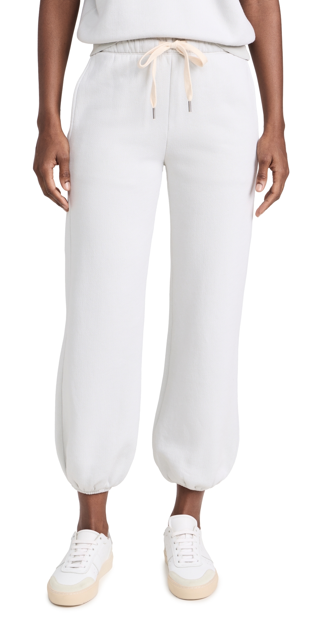 Fabric: Mid-weight fleece. Elastic cuffs. Covered elastic waist with drawstring. On-seam hip pockets. Shell: 51% cotton/25% viscose/24% polyester. Wash cold. Made in the USA. Measurements: Measurements from size XS Rise: 10.75in / 27cm Inseam: 25.5in / 65cm
