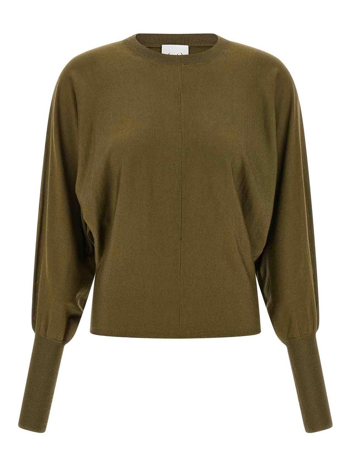Pull à col rond en laine à manches longues et larges en chauve-souris avec poignets